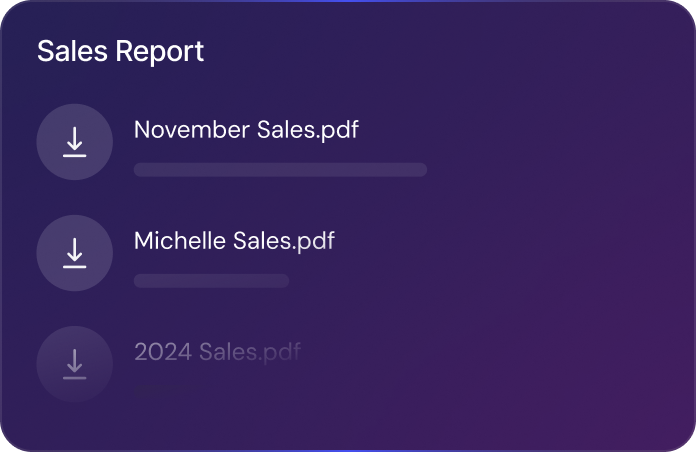 Easily download reports comprising of data from you sales reps or a custom date range.